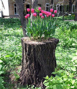 6.درون تنه درخت را تا میتوانید خالی کنید و در آن گل و گیاه پرورش دهید تنه درختان میتوانند گلدانهای بسیار زیبایی باشند.