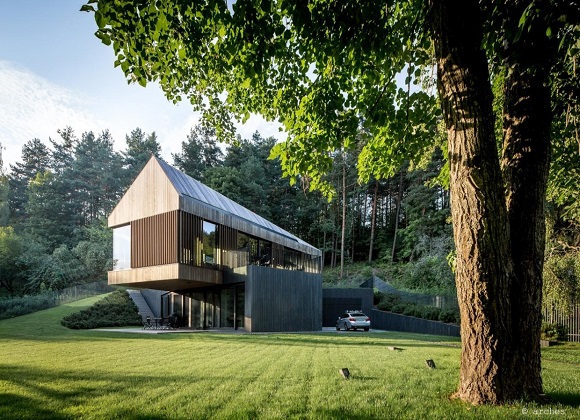 این ویلا که از مزرعه های شیروانی دار قرن 19 الهام گرفته شده ، با یک سری تغییرات هوشمندانه تبدیل به یکی از مدرن ترین ویلا های قرن 21 شده است .معماران این ویلا با کمک چوب کبونی و آلومینیوم توانسته اند ظاهری مینیمال خلق کنند .